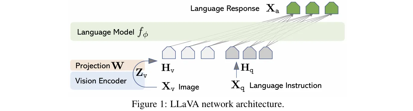 LLaVA: CLIP ViT-L + Linear Projection + Vicuna