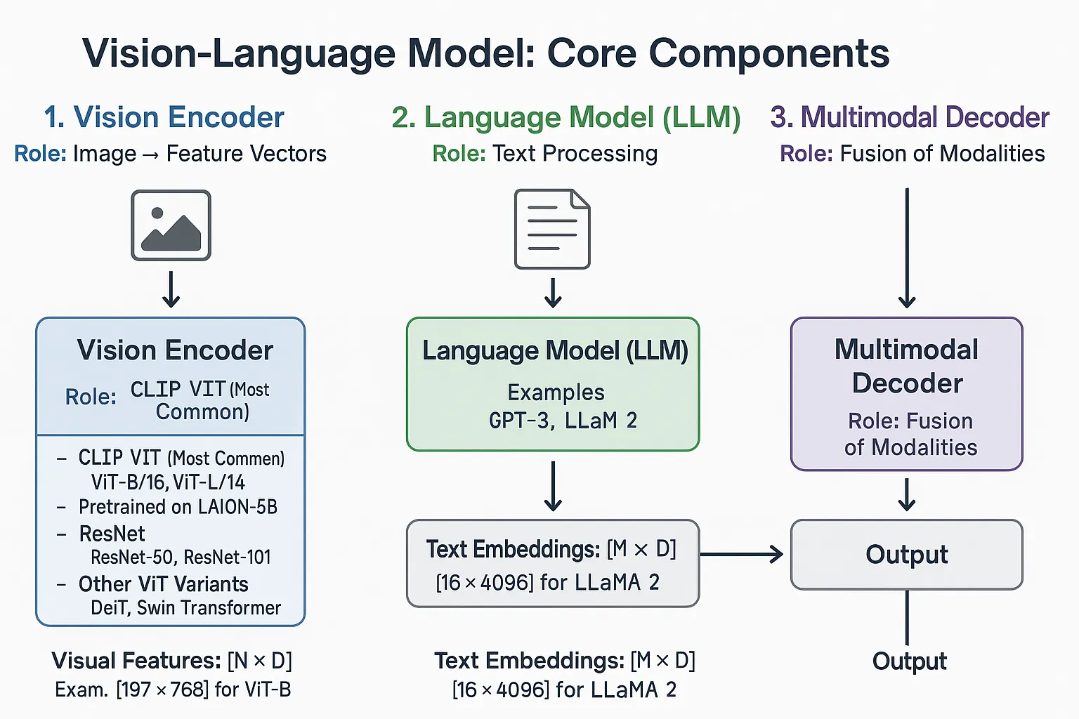 VLM은 일반적으로 3가지 핵심 요소로 구성된다:
