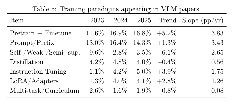 현재 트렌드는 Intermediate Fusion + Frozen Pretrained Models + Efficient Adapters 조합이 지배적이며, 이는 비용 효율성과 성능의 최적 균형을 찾는 것을 목표로 한다.