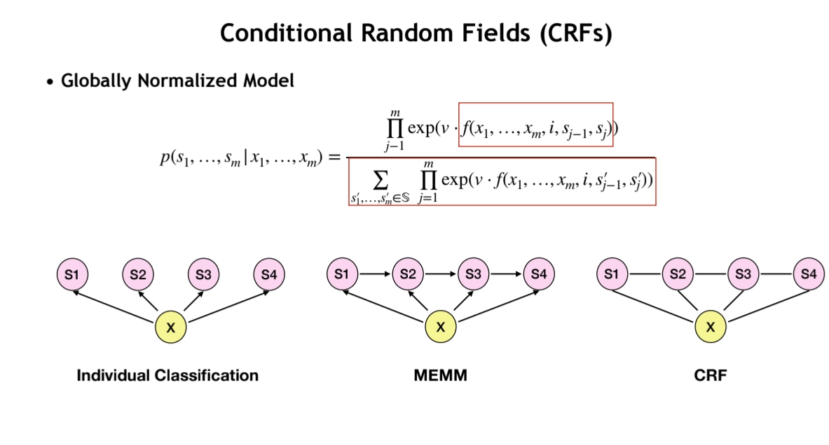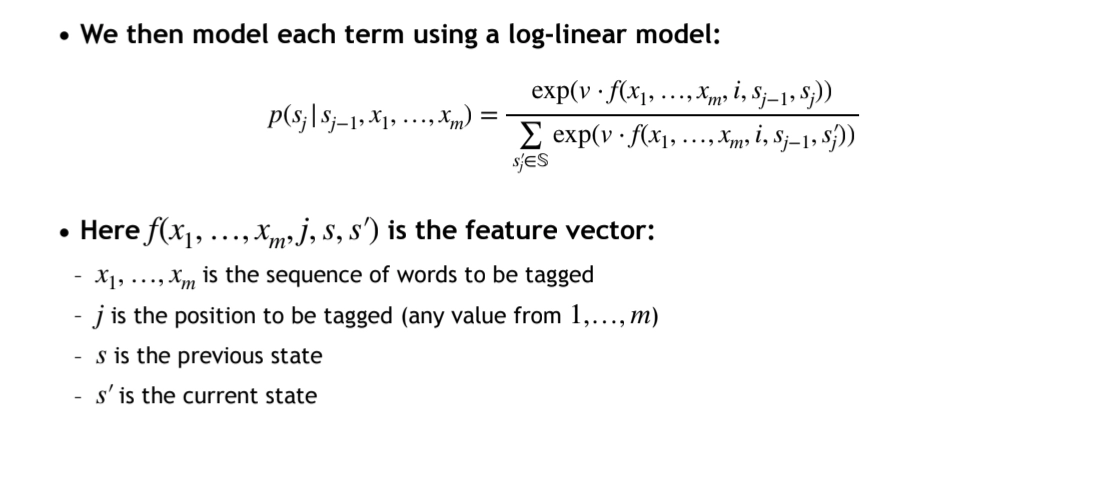 In the denominator we are only summing over all possible tags for the current position j. → locally calculation