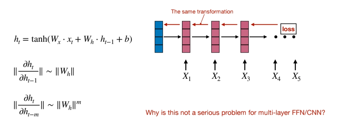 No repeated weight multiplication: In RNNs, the same weight matrix is multiplied repeatedly across many time steps, which can exponentially amplify or diminish gradients. In FFNs/CNNs, each layer has different weights, so this compounding effect doesn't occur in the same way.