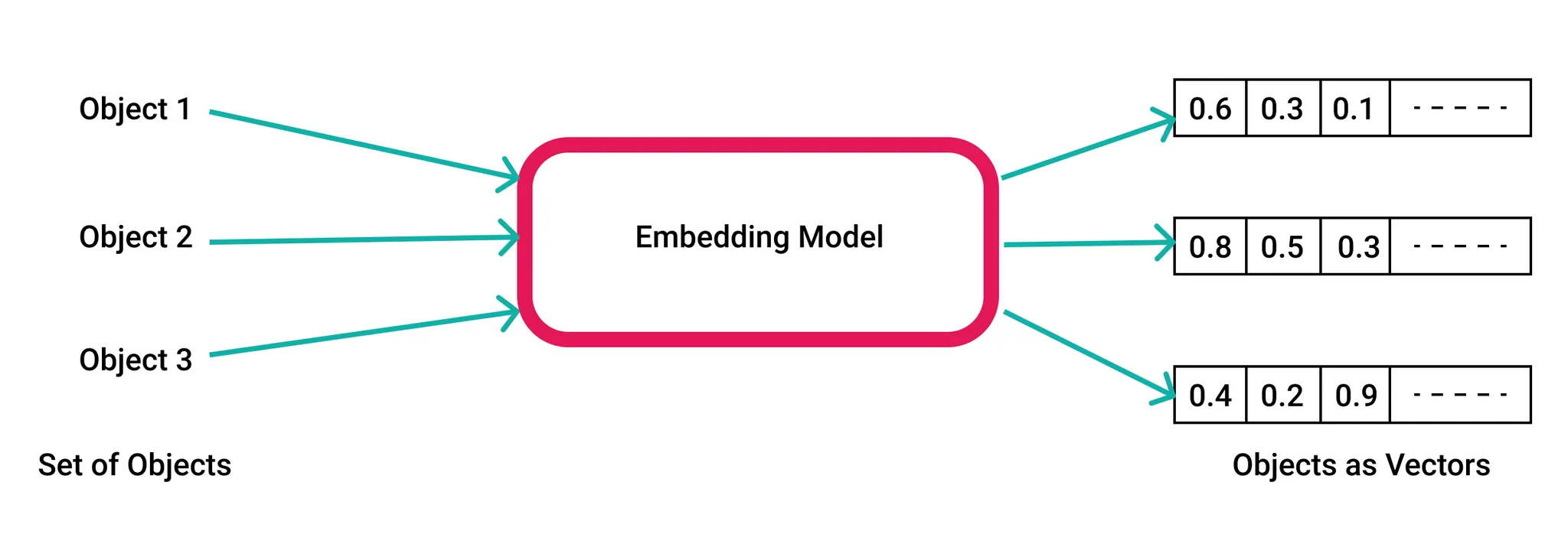Text Data: Techniques like Word Embeddings (Word2Vec, GloVe), Sentence Embeddings (BERT, Sentence-BERT), or Document Embeddings are used to convert words, sentences, or entire documents into vectors. These embeddings capture semantic meaning, where similar words or sentences have vectors that are close to each other in the vector space.