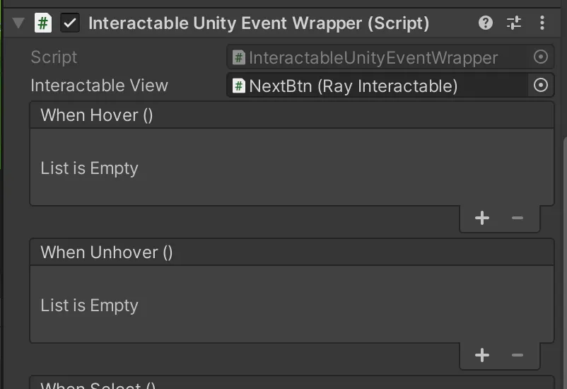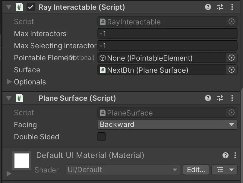Plane Surface → Ray Interactable → Interactable Unity Event Wrapper