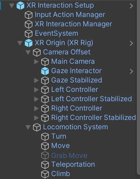 To set up an XR scene, add an XR Origin.