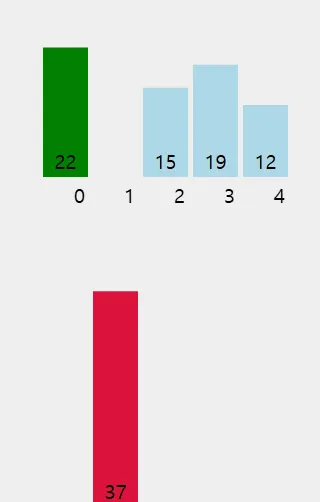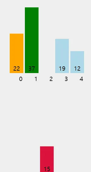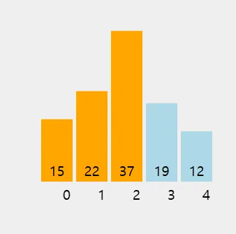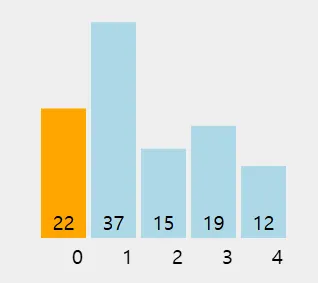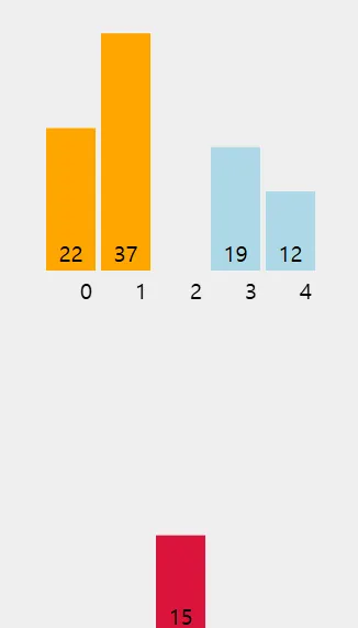 이제 15를 맨 앞에 삽입한다. 배열 상태는 [15, 22, 37, 19, 12]가 된다.