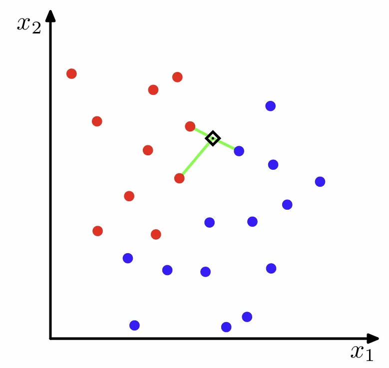Step 3: Assign the labelThe predicted class for the new point is simply the class label of its nearest neighbor: ŷ = y_{nn(x)}