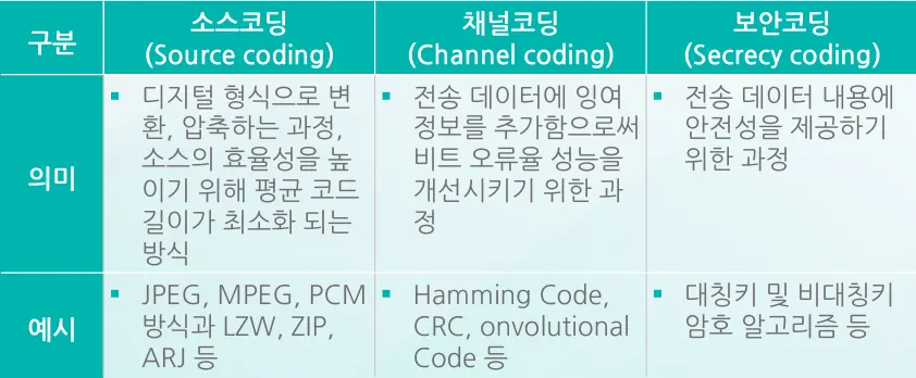 데이터를 정확하게 보낼 수 있는 방법으로 전송데이터에 잉여 정보를 추가하여 비트 오류율 성능을 개선
