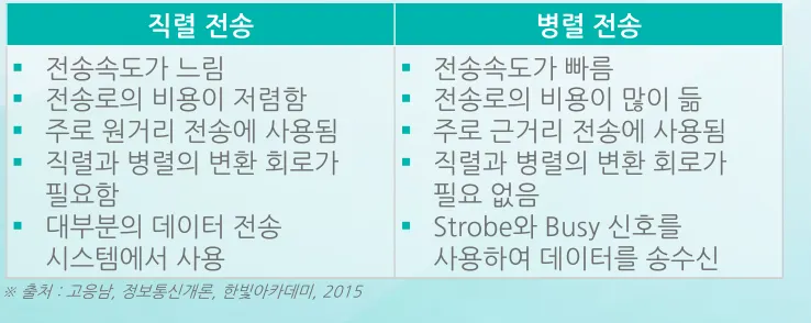 컴퓨터와 주변기기 사이의 데이터 전송에서 주로 사용