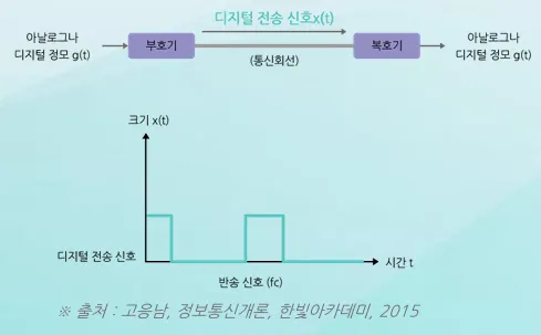 직류 전송 방식, 아날로그나 디지털 정보를 부호기를 이용해 디지털 전송 신호로 변환 후 전송. 전송 후 복호기를 이용해 다시 원래 정보로 변환