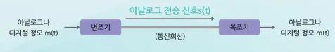 교류 전송 방식을 사용. 전송 후 복조기를 이용해 다시 원래 정보로 변환